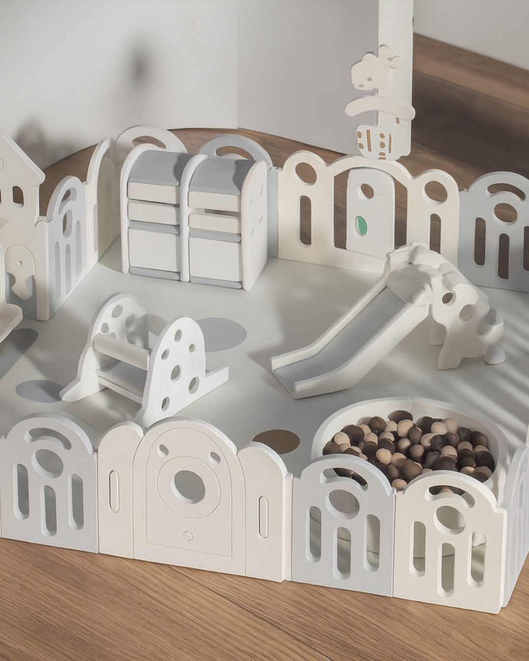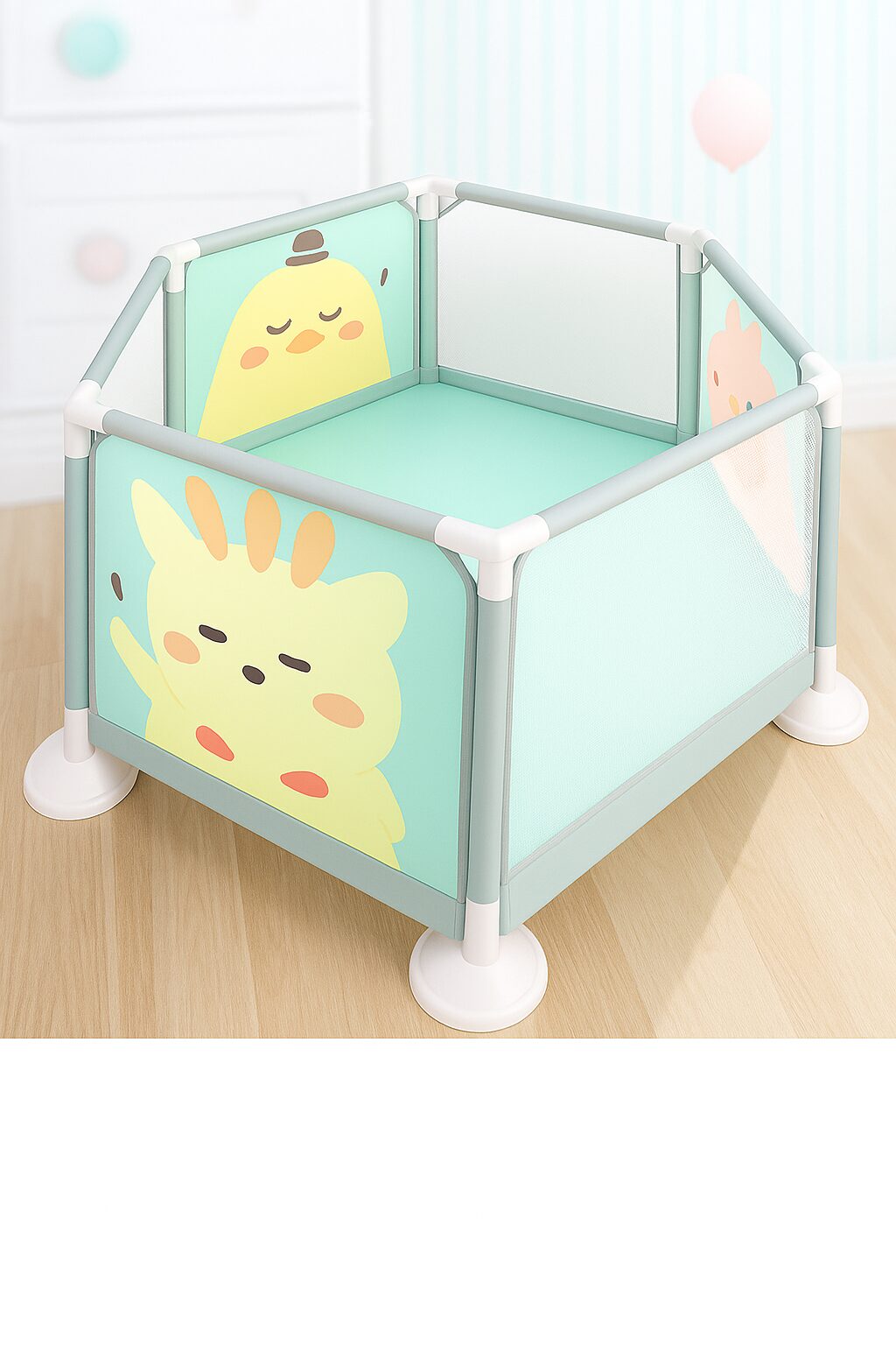 El corral incluye solo la canasta de basquetbol, no mat y los juguetes